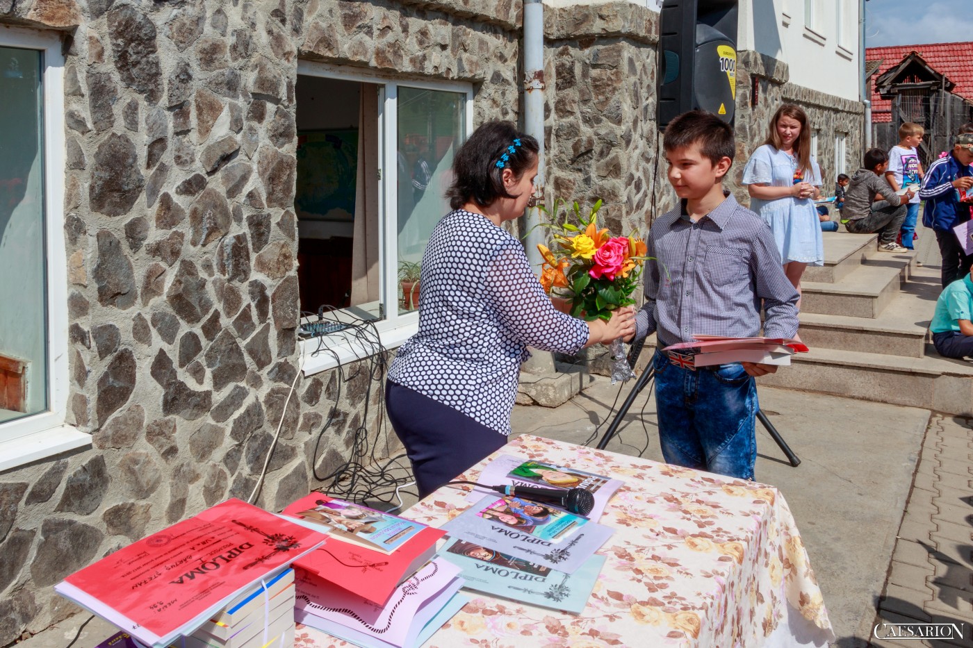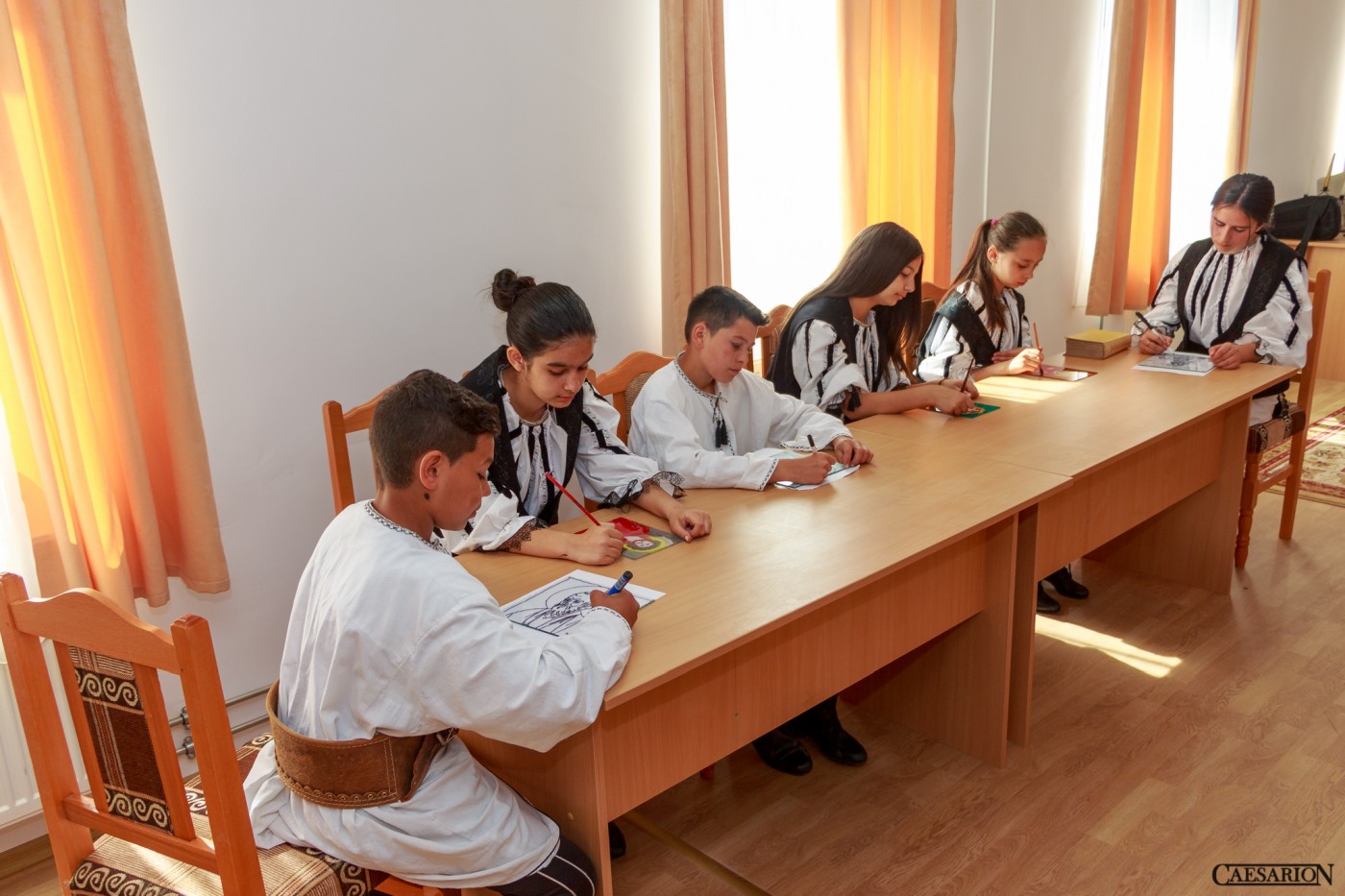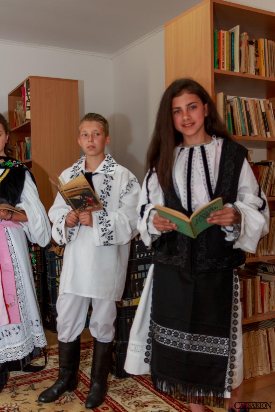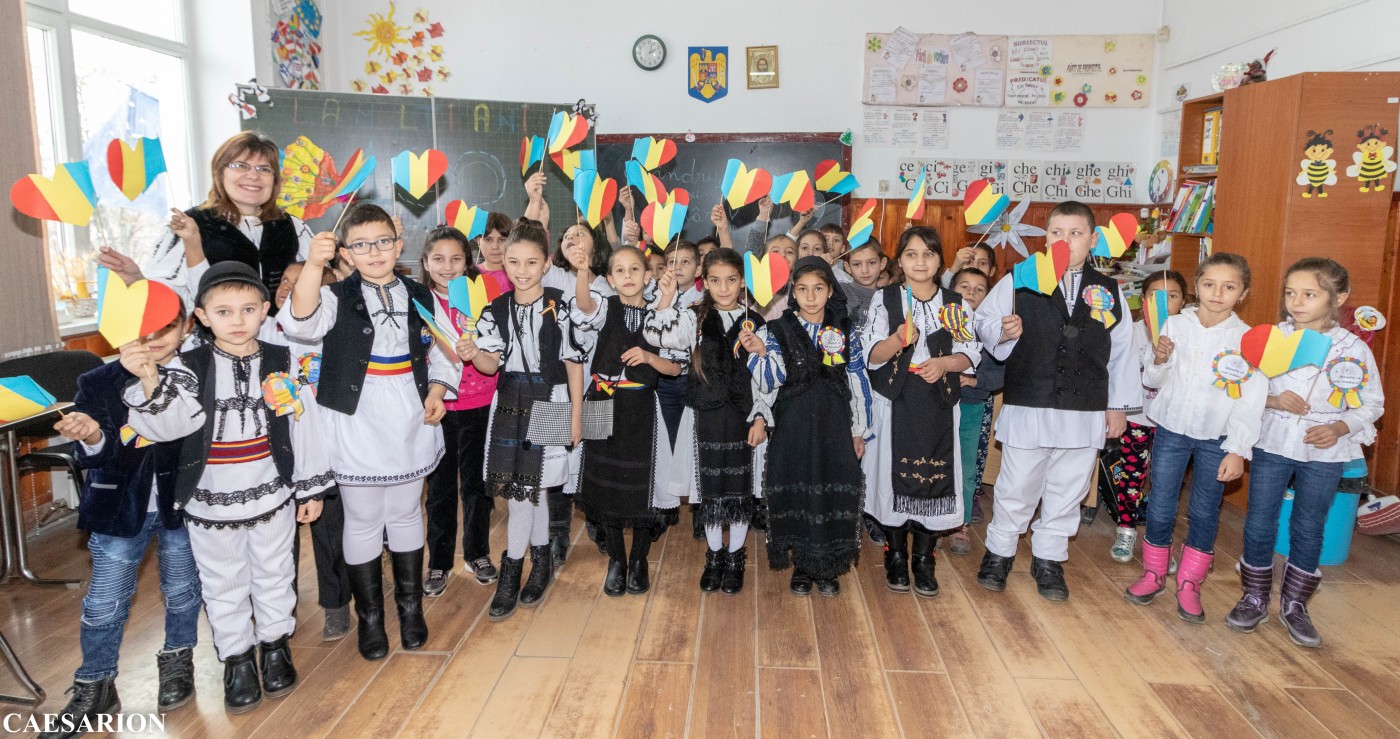 Copii in haine populare, citind. Dovada ca istoria si traditia Vurparului o sa fie duse peste veacuri!